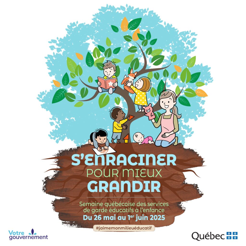 Cette semaine de valorisation permet de souligner la qualité des services de tous les milieux de garde, leur contribution majeure au développement des tout-petits ainsi que leur place importante dans la vie des parents. Le thème de cette année s’inspire de la métaphore de l’arbre pour représenter les services de garde éducatifs à l’enfance (SGEE), qui offrent aux enfants leurs premiers apprentissages et des bases solides pour l’avenir.